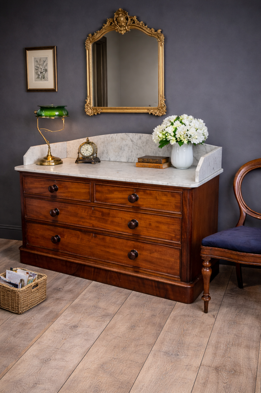 Antique Victorian Mahogany Marble Top Sideboard Chest | Kitchen Unit 138cm