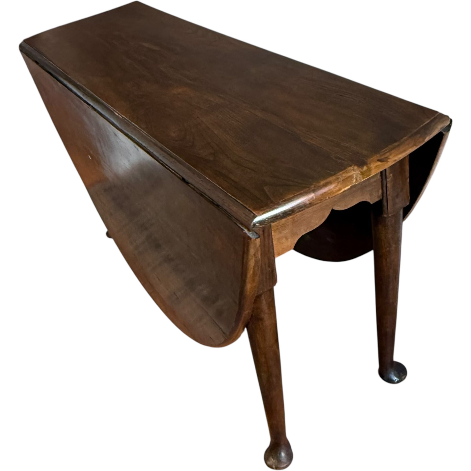 The two drop leaves extend to create a generous oval dining surface, while the table folds neatly to a narrow footprint when not in use.
