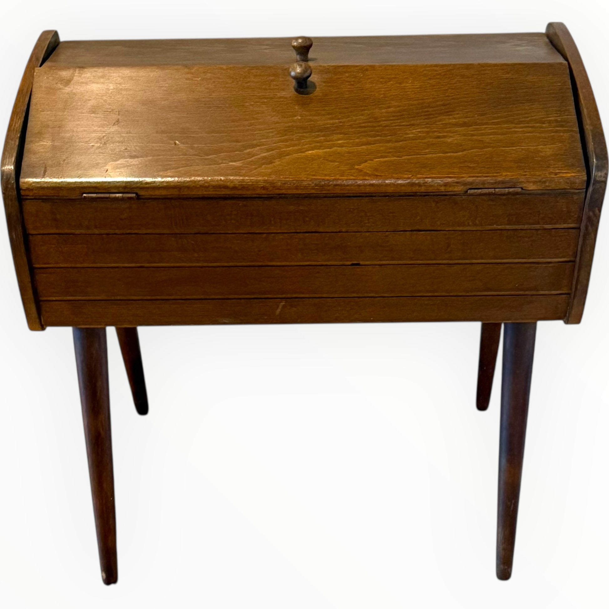 Mid Century Elm Sewing Box on Stand
