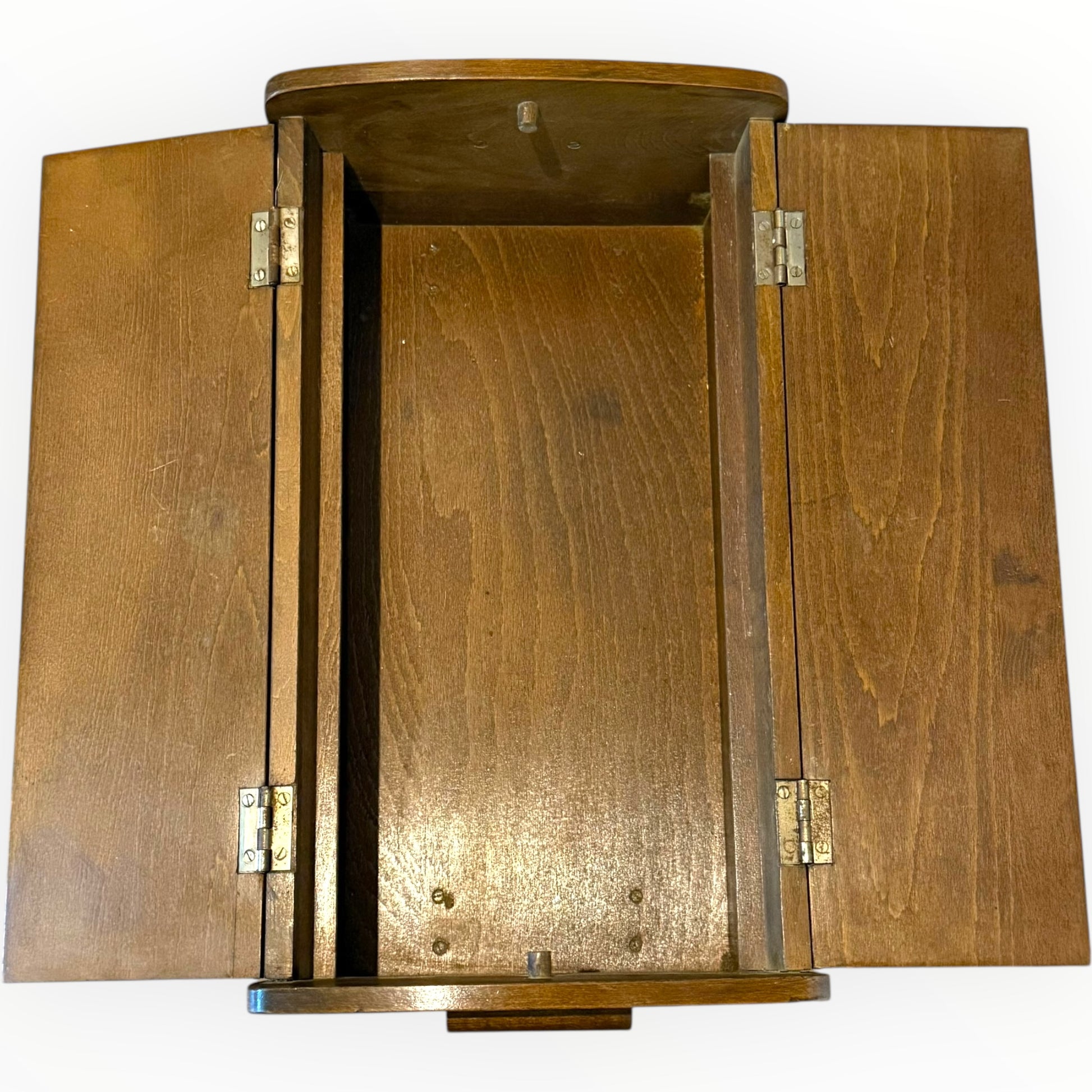 Condition is good overall with age-related wear and minor surface marks in keeping with a vintage piece. It remains sturdy and presents very well. Please note the lid does not close fully flat; this is an intentional part of the original design and not a fault.