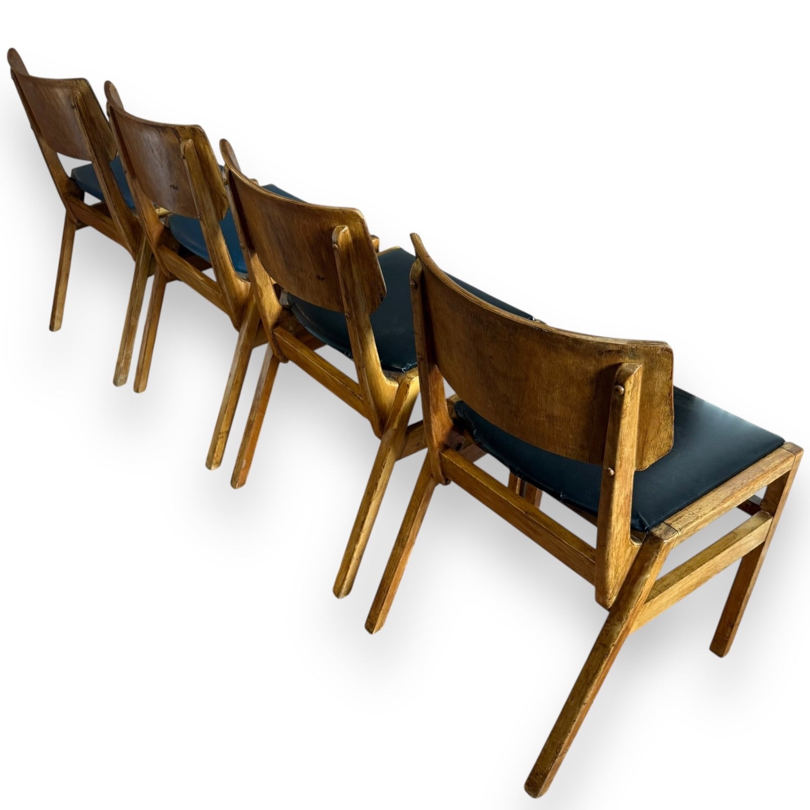 Set of 4 Mid Century Café Style Dining Chairs Wooden Frame Retro Vintage